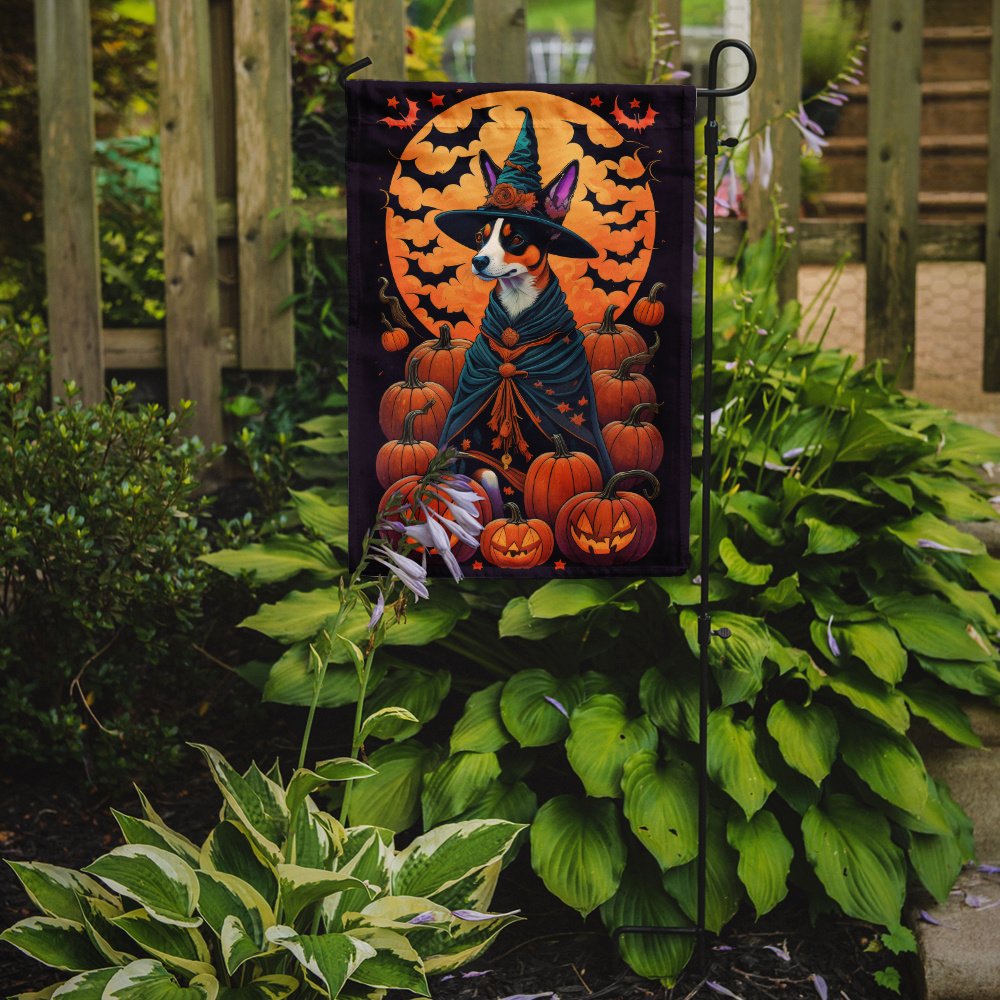 Garden Flag featuring breed specific Basenji artwork. Celebrate Halloween with this Halloween Garden Flag. Enhance the beauty of your garden, patio, or yard with Caroline's Treasures Decorative Garden Flag, proudly made in the USA. Crafted from two pieces of thick, double-sided polyester fabric, this 2-ply garden flag is designed to withstand various weather conditions, making it water-resistant and weatherproof. Featuring correctly readable words on both sides, this garden flag offers a delightful visual experience from any angle. With its heavier weight, it stands out among other garden flags, ensuring stability and durability even in wind, rain, and snow. Measuring approximately 11 1/4 inches by 15 1/2 inches, this flag allows you to personalize your outdoor decor. It comes with a 1 1/2-inch sleeve sewn in, allowing easy attachment to any standard garden flag stand or garden size porch hanger (sold separately). Make a statement in your outdoor space with Caroline's Treasures Decorative Garden Flag, a vibrant and high-quality flag that adds color and personality to your surroundings. Proudly made in the USA, it's a symbol of quality craftsmanship and attention to detail.