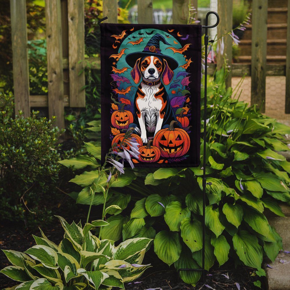 Garden Flag featuring breed specific Beagle artwork. Celebrate Halloween with this Halloween Garden Flag. Enhance the beauty of your garden, patio, or yard with Caroline's Treasures Decorative Garden Flag, proudly made in the USA. Crafted from two pieces of thick, double-sided polyester fabric, this 2-ply garden flag is designed to withstand various weather conditions, making it water-resistant and weatherproof. Featuring correctly readable words on both sides, this garden flag offers a delightful visual experience from any angle. With its heavier weight, it stands out among other garden flags, ensuring stability and durability even in wind, rain, and snow. Measuring approximately 11 1/4 inches by 15 1/2 inches, this flag allows you to personalize your outdoor decor. It comes with a 1 1/2-inch sleeve sewn in, allowing easy attachment to any standard garden flag stand or garden size porch hanger (sold separately). Make a statement in your outdoor space with Caroline's Treasures Decorative Garden Flag, a vibrant and high-quality flag that adds color and personality to your surroundings. Proudly made in the USA, it's a symbol of quality craftsmanship and attention to detail.