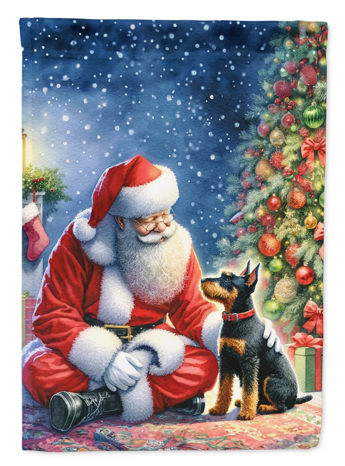 Garden Flag featuring breed specific Manchester Terrier artwork. Celebrate Christmas with this Christmas Garden Flag. Enhance the beauty of your garden, patio, or yard with Caroline's Treasures Decorative Garden Flag, proudly made in the USA. Crafted from two pieces of thick, double-sided polyester fabric, this 2-ply garden flag is designed to withstand various weather conditions, making it water-resistant and weatherproof. Featuring correctly readable words on both sides, this garden flag offers a delightful visual experience from any angle. With its heavier weight, it stands out among other garden flags, ensuring stability and durability even in wind, rain, and snow. Measuring approximately 11 1/4 inches by 15 1/2 inches, this flag allows you to personalize your outdoor decor. It comes with a 1 1/2-inch sleeve sewn in, allowing easy attachment to any standard garden flag stand or garden size porch hanger (sold separately). Make a statement in your outdoor space with Caroline's Treasures Decorative Garden Flag, a vibrant and high-quality flag that adds color and personality to your surroundings. Proudly made in the USA, it's a symbol of quality craftsmanship and attention to detail.