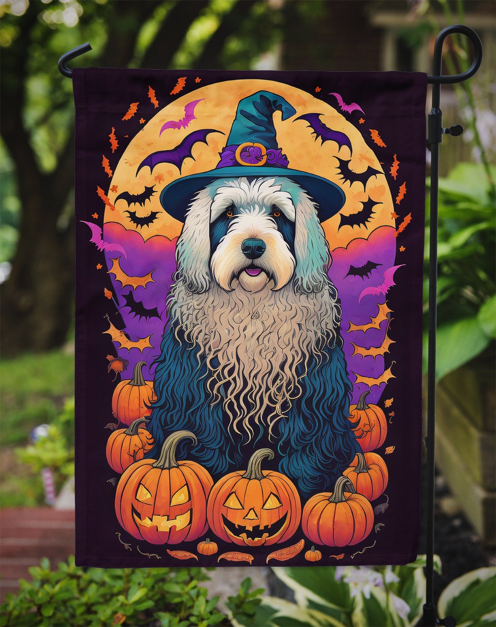 Garden Flag featuring breed specific Old English Sheepdog artwork. Celebrate Halloween with this Halloween Garden Flag. Enhance the beauty of your garden, patio, or yard with Caroline's Treasures Decorative Garden Flag, proudly made in the USA. Crafted from two pieces of thick, double-sided polyester fabric, this 2-ply garden flag is designed to withstand various weather conditions, making it water-resistant and weatherproof. Featuring correctly readable words on both sides, this garden flag offers a delightful visual experience from any angle. With its heavier weight, it stands out among other garden flags, ensuring stability and durability even in wind, rain, and snow. Measuring approximately 11 1/4 inches by 15 1/2 inches, this flag allows you to personalize your outdoor decor. It comes with a 1 1/2-inch sleeve sewn in, allowing easy attachment to any standard garden flag stand or garden size porch hanger (sold separately). Make a statement in your outdoor space with Caroline's Treasures Decorative Garden Flag, a vibrant and high-quality flag that adds color and personality to your surroundings. Proudly made in the USA, it's a symbol of quality craftsmanship and attention to detail.