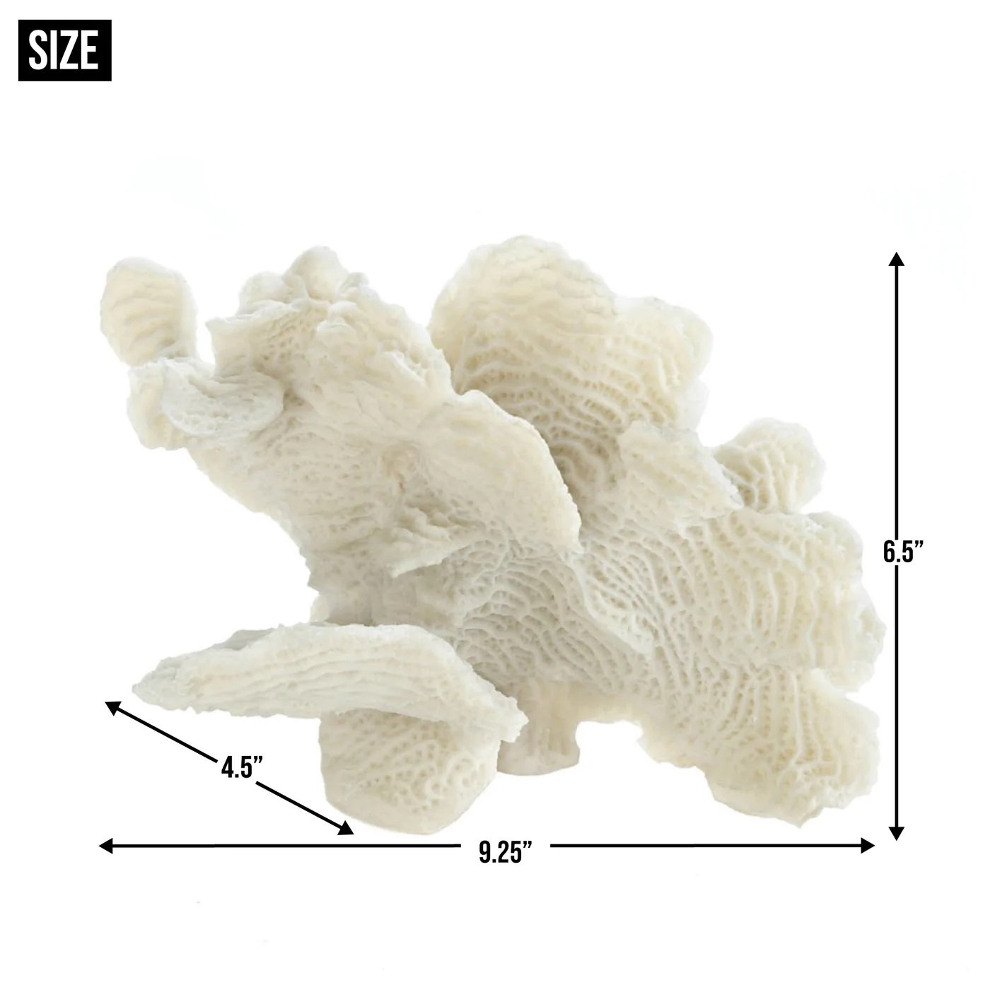• This large white coral accent has mesmerizing details that you will love discovering. Its delicate ridges and freeform shape make this a natural beauty for your tabletop, shelf or desk. It's a piece of ocean-inspired art!