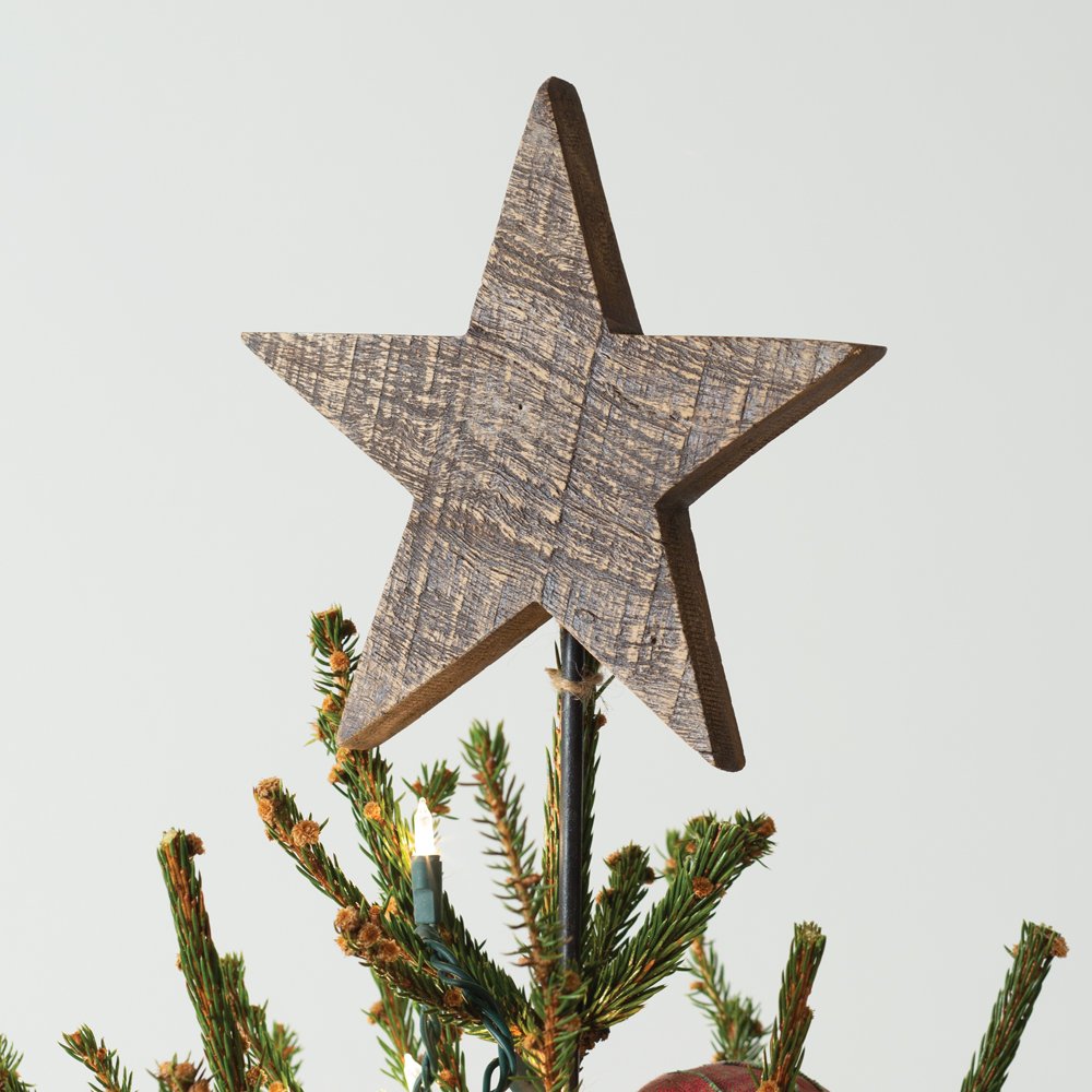 Arrange this wooden star atop your tree for a simplistic Christmas look. It features two twine strings to tie to your tree and a metal post to stabilize it.