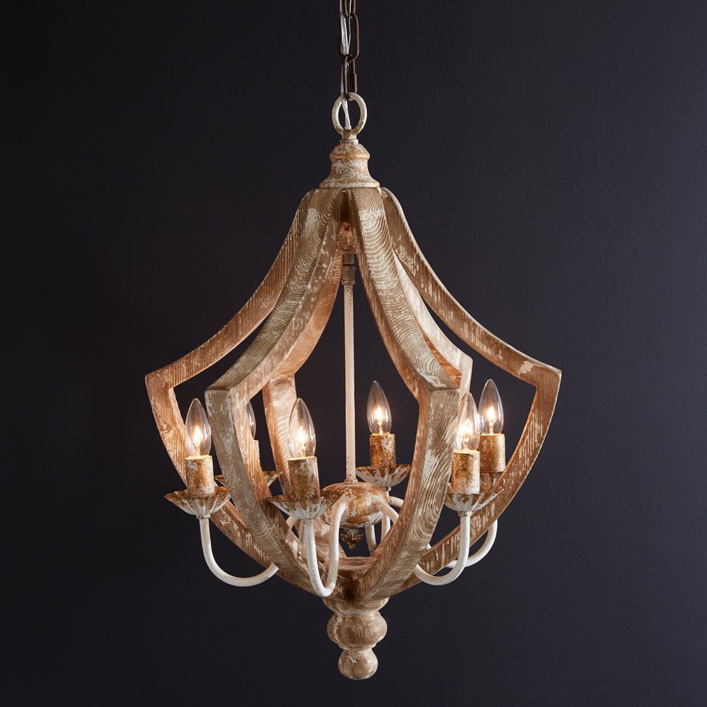 Use our Lorraine Pendant over your dining table or as accent lighting. This pendant lamp is designed to be hardwired: no plug is included. This lamp hangs a total of 59½'' from the canopy to the end of the lamp. Includes a matching canopy and chain. Requires six candelabra base light bulbs, not included.
