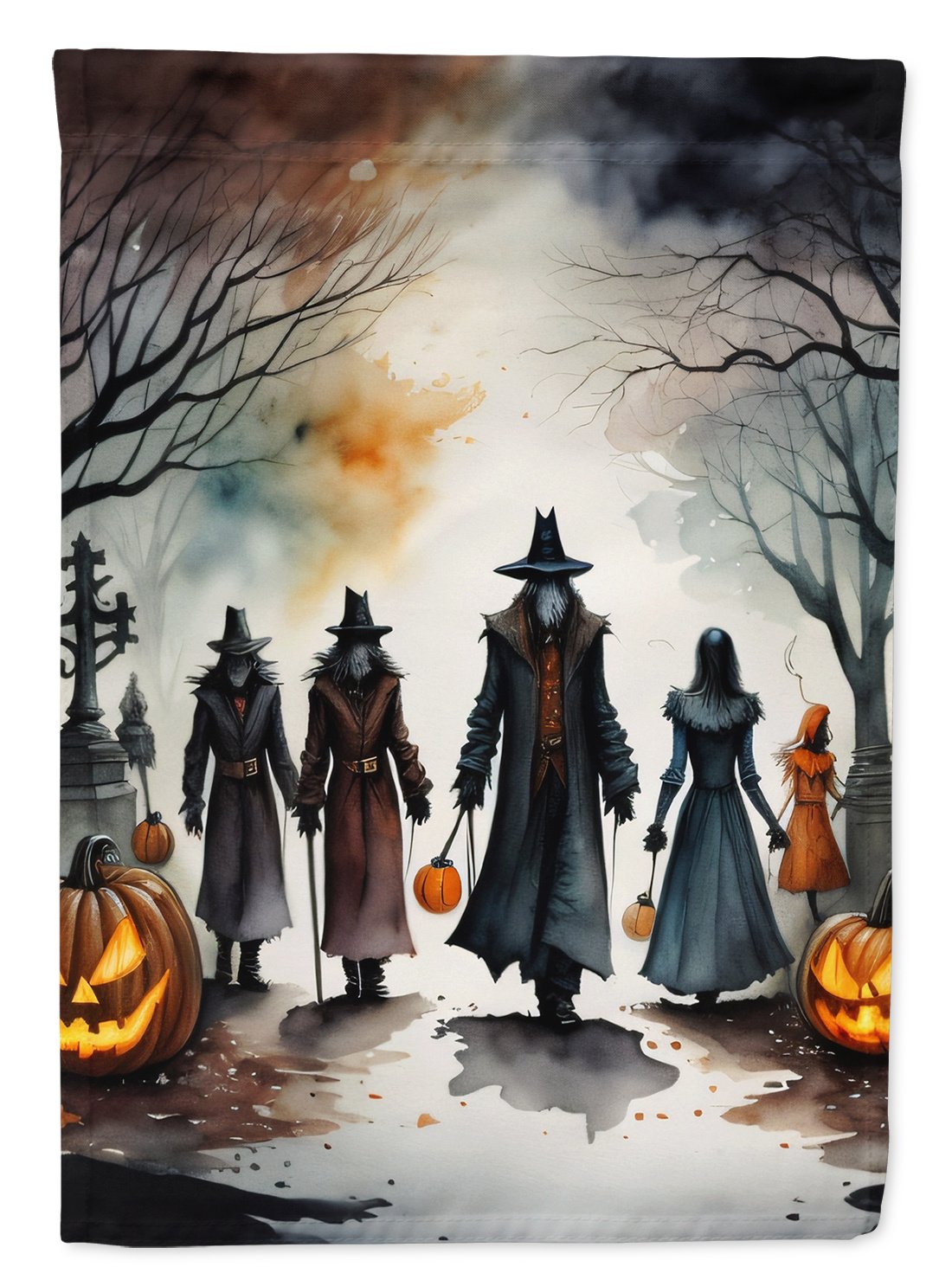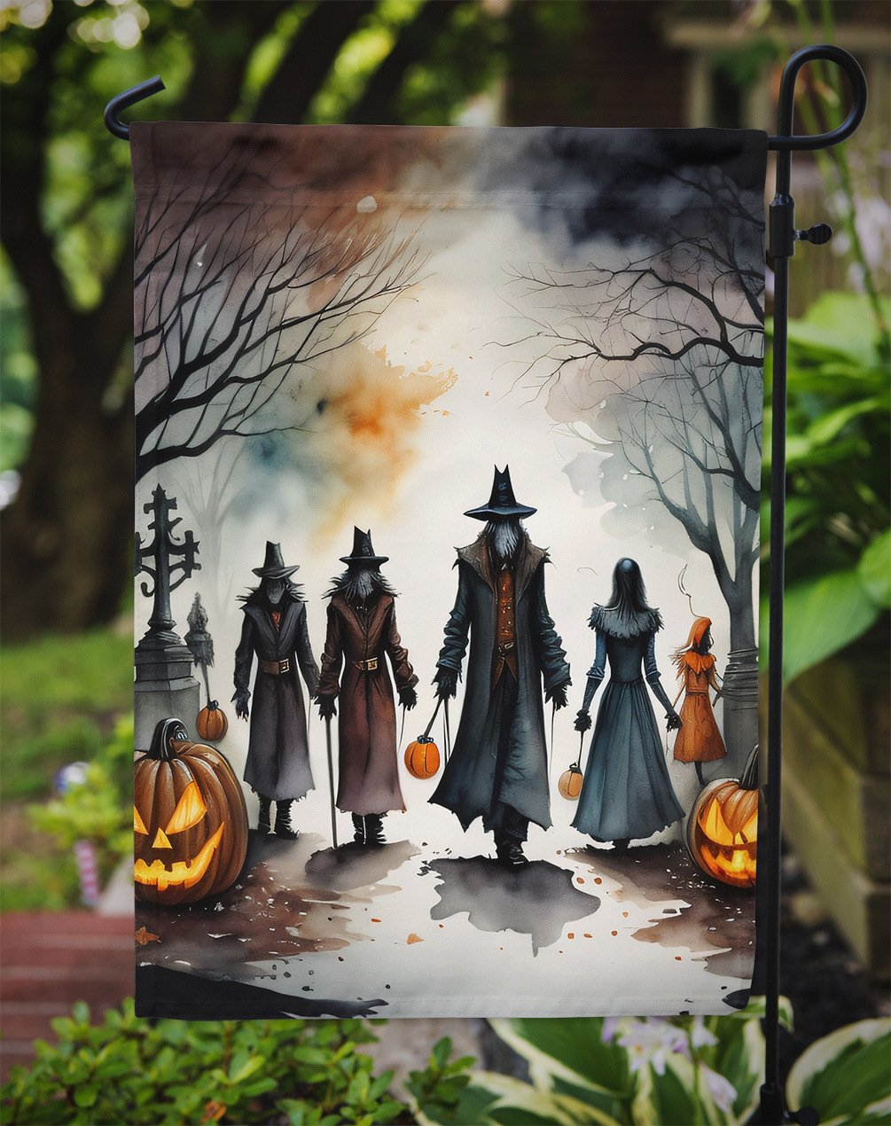 Celebrate Halloween with this Halloween Garden Flag. Enhance the beauty of your garden, patio, or yard with Caroline's Treasures Decorative Garden Flag, proudly made in the USA. Crafted from two pieces of thick, double-sided polyester fabric, this 2-ply garden flag is designed to withstand various weather conditions, making it water-resistant and weatherproof. Featuring correctly readable words on both sides, this garden flag offers a delightful visual experience from any angle. With its heavier weight, it stands out among other garden flags, ensuring stability and durability even in wind, rain, and snow. Measuring approximately 11 1/4 inches by 15 1/2 inches, this flag allows you to personalize your outdoor decor. It comes with a 1 1/2-inch sleeve sewn in, allowing easy attachment to any standard garden flag stand or garden size porch hanger (sold separately). Make a statement in your outdoor space with Caroline's Treasures Decorative Garden Flag, a vibrant and high-quality flag that adds color and personality to your surroundings. Proudly made in the USA, it's a symbol of quality craftsmanship and attention to detail.