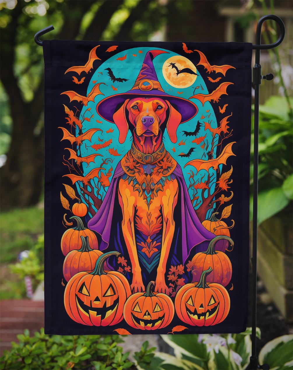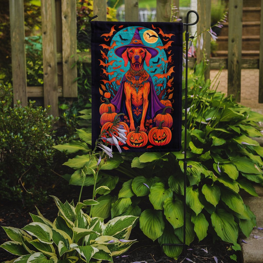 Garden Flag featuring breed specific Vizsla artwork. Celebrate Halloween with this Halloween Garden Flag. Enhance the beauty of your garden, patio, or yard with Caroline's Treasures Decorative Garden Flag, proudly made in the USA. Crafted from two pieces of thick, double-sided polyester fabric, this 2-ply garden flag is designed to withstand various weather conditions, making it water-resistant and weatherproof. Featuring correctly readable words on both sides, this garden flag offers a delightful visual experience from any angle. With its heavier weight, it stands out among other garden flags, ensuring stability and durability even in wind, rain, and snow. Measuring approximately 11 1/4 inches by 15 1/2 inches, this flag allows you to personalize your outdoor decor. It comes with a 1 1/2-inch sleeve sewn in, allowing easy attachment to any standard garden flag stand or garden size porch hanger (sold separately). Make a statement in your outdoor space with Caroline's Treasures Decorative Garden Flag, a vibrant and high-quality flag that adds color and personality to your surroundings. Proudly made in the USA, it's a symbol of quality craftsmanship and attention to detail.
